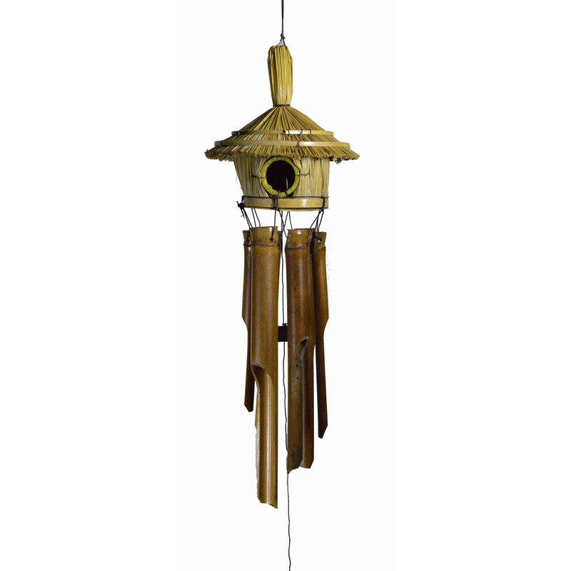 WorldBazzar Hand Carved Bird House Canary red Birds Bamboo Wood Tropical Windchime