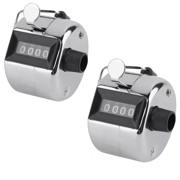 Hand Counter, Mechanical Hand Counter, Metal Hand Counter, Mechanical Hand Counter, 4-Digit, 2 Pieces, 4-Digit Hand Counter, Hand Counter for Sports, Golf
