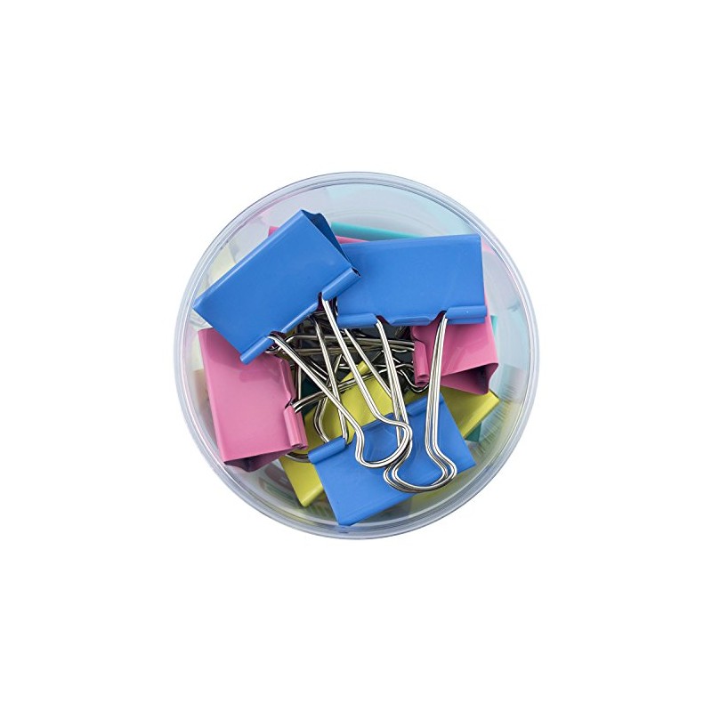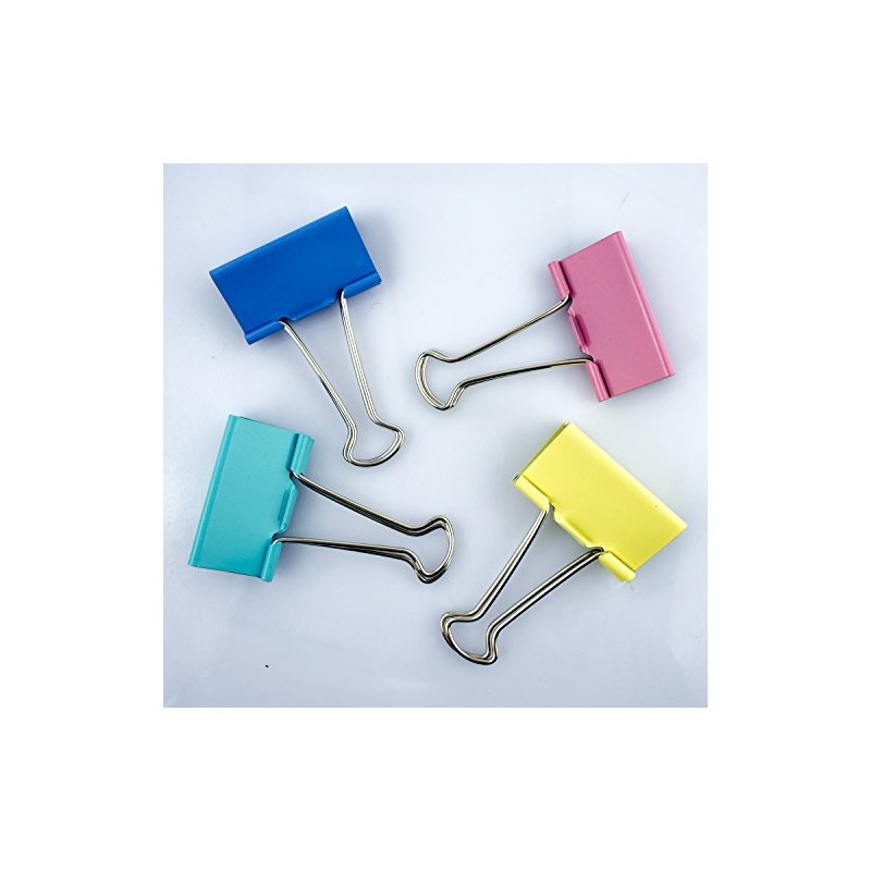 - A pack of colourful metal foldback bull clips for home, school and office.