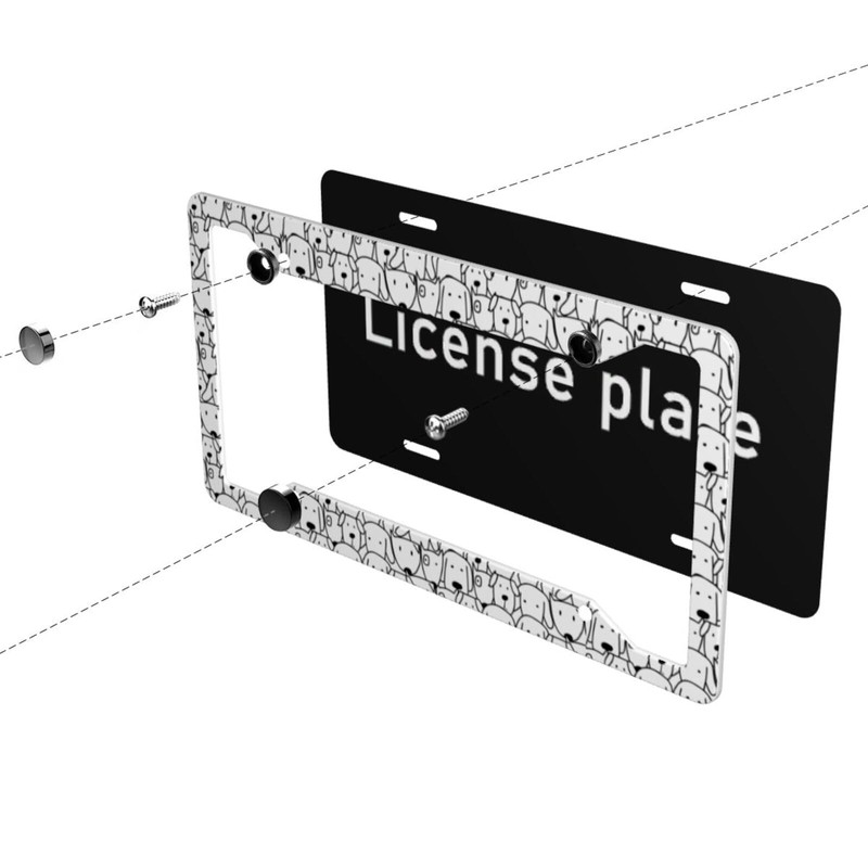Hand Drawn Cute Dog License Plate Frame 2 Pack Universal US Car Plate Holder Cover Accessories Decor with Screw for Women Man 12.3 x 6.3 Inch