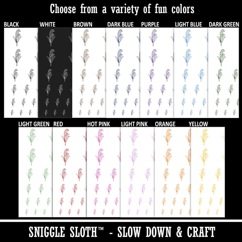 Hand Drawn Lily of the Valley Flower Temporary Tattoo Water Resistant Fake Body Art Set Collection - Black (One Sheet)