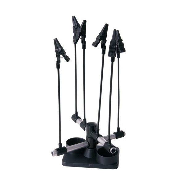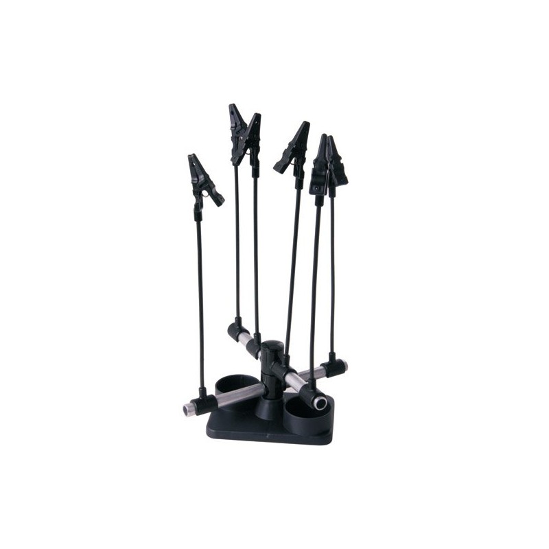 Practical holder for gripping models while you paint at six points, In the base there are two pipes in a double-rotating body, In these tubes are mounted terminals inside which is flexible copper wire covered in black rubber,