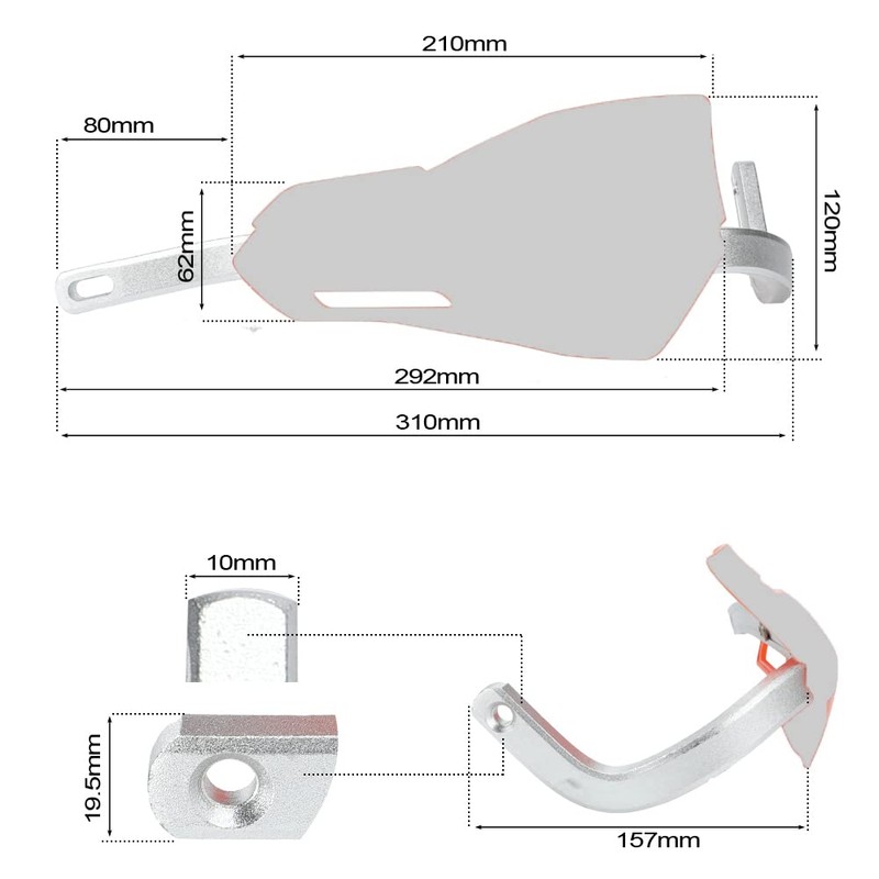 High quality 6061-T6,Black anodized aluminum Debris Deflectors off a bend that follows the shape of the handlebars for a better fit and a wide radius curve for more lever room