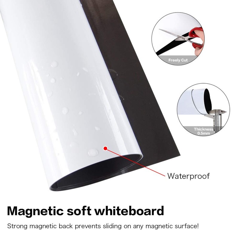 - ✅HARD GRIP and NO CREASES : The magnetic whiteboard has strong grip on steel surfaces and because of it's thickness it does not to make creases when handled. The frigde white board can hold magnetic items when placed on the refrigerator, freezer or other metal surface, and because of it's nicely finished rounded corners it can be easily removed. Is is very flexible, and easy to fit on the fridge.