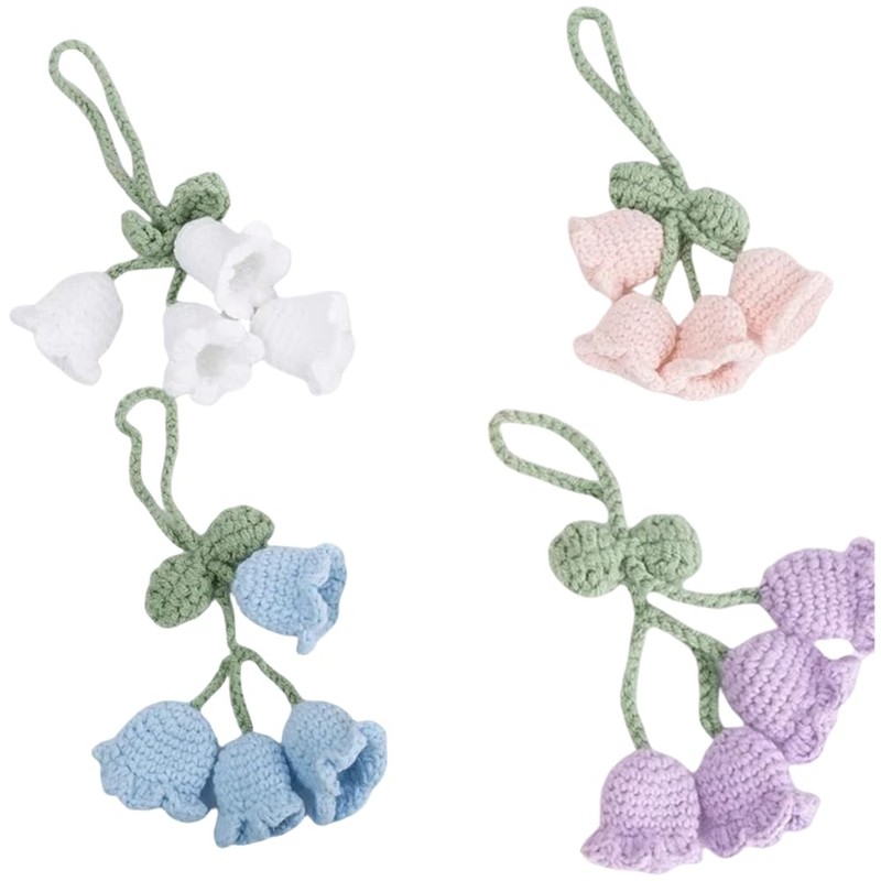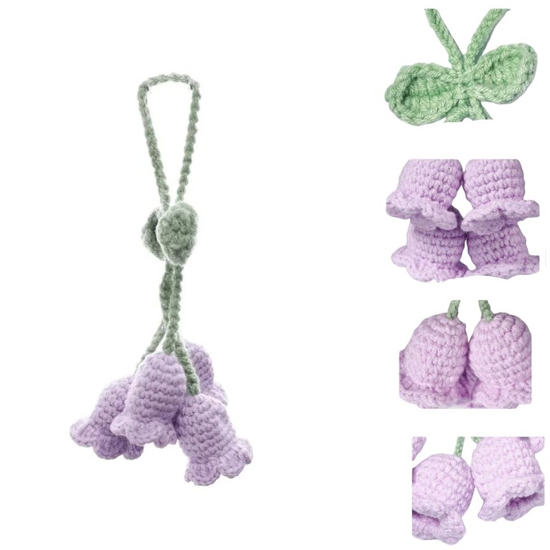 Hand Knitted Crochet Flower Decor for Mirror Flower Keychain Charms Mirror Hanging Car Accessories Cute Little Lily of The Valley, Rear View Mirrors, Car Key Crochet Flower Pendant (Light Purple)