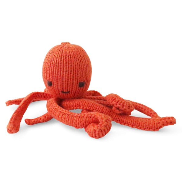 Hand-Knitted Organic Cotton Octopus Plush Toy (Orange)