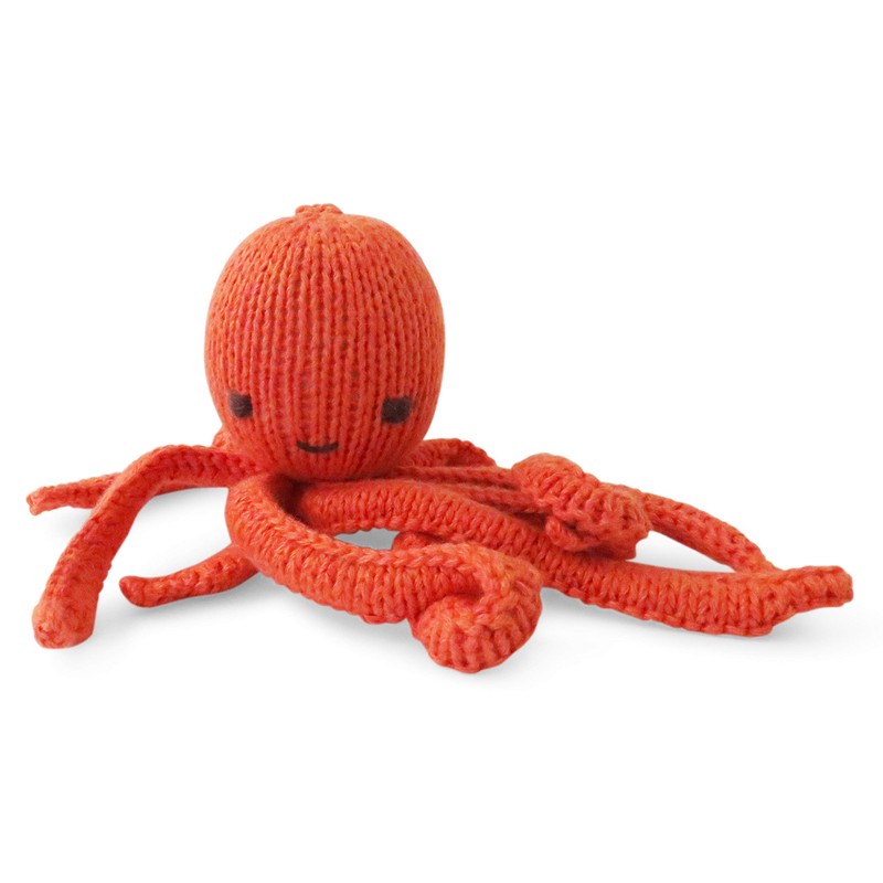 - Hand-knitted cuddly octopus toy made from certified organic cotton, filled with Oeko-Tex certified polyester.