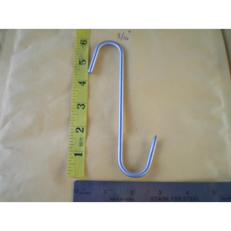 HAND MADE 10 PCS. HEAVY DUTY STAINLESS STEEL MEDIUM MEAT/POULTRY S HOOK, 6" X 5MM.