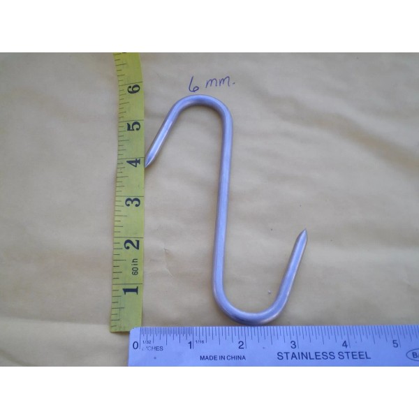 HAND MADE 12 PCS. HEAVY DUTY STAINLESS STEEL MEAT/POULTRY S HOOKS, 6"X6MM. W/2" HOOK ENDS