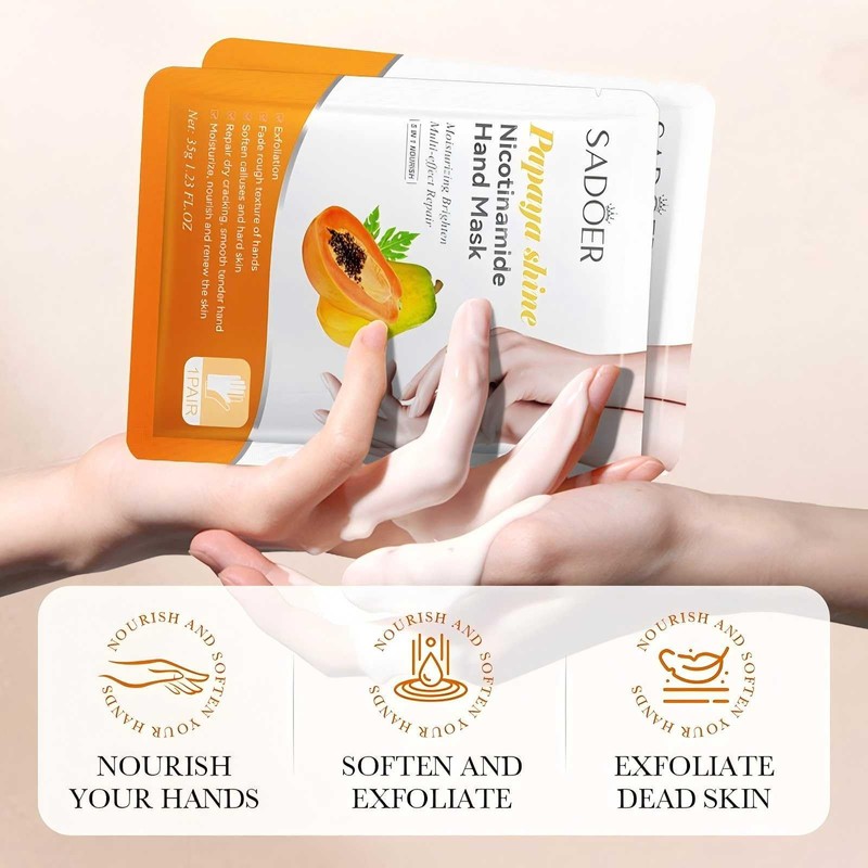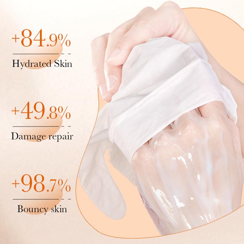 - Renewing Exfoliation: Discover soft, smooth hands with our hand mask, which contains fine exfoliating particles to gently remove dead skin cells. This process ensures healthier, more radiant skin and an even complexion. The mask is perfect for anyone who has rough or calloused hands, as it helps restore a youthful appearance and texture.