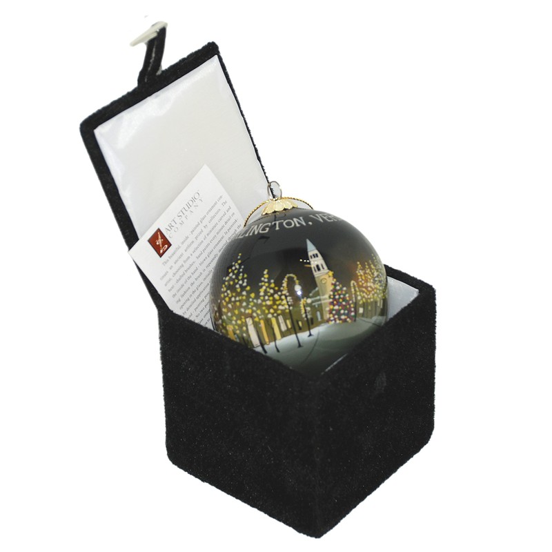 - Artist rendering of Burlington at night: Spin this ornament 360 degrees to view the glowing one-of-a-kind shops in Church Street Marketplace downtown area.