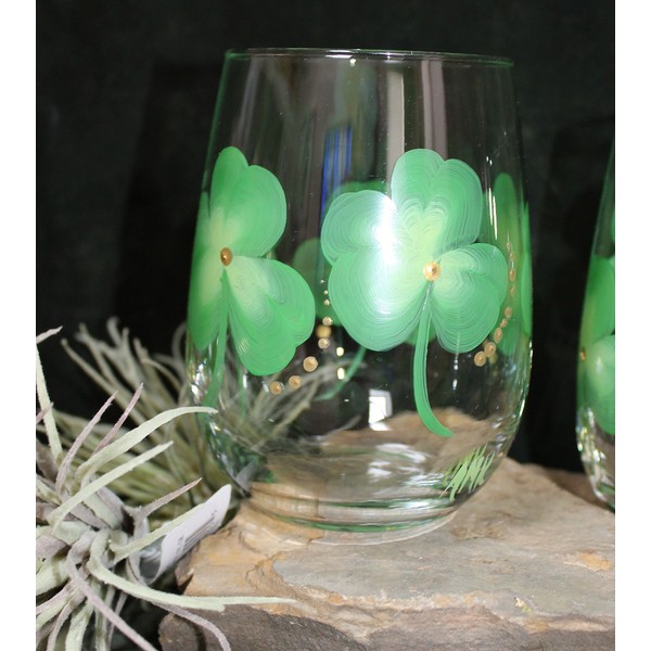 Hand Painted Irish Wine Glasses (Set of 2) - Stemless