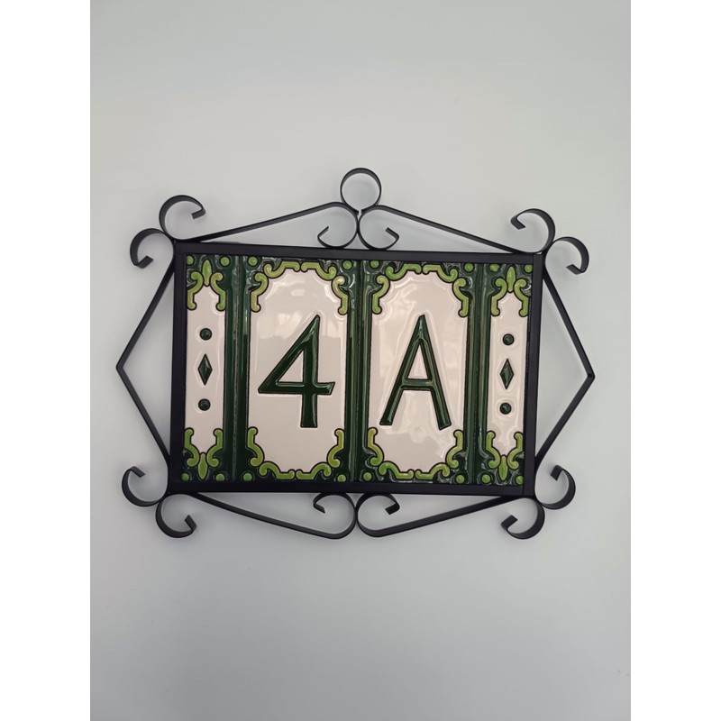 Hand-Painted Jacho Green Number Tiles Option of Metal Filigree Frames - 11 x 5.5 cm (Number 0 Tile)