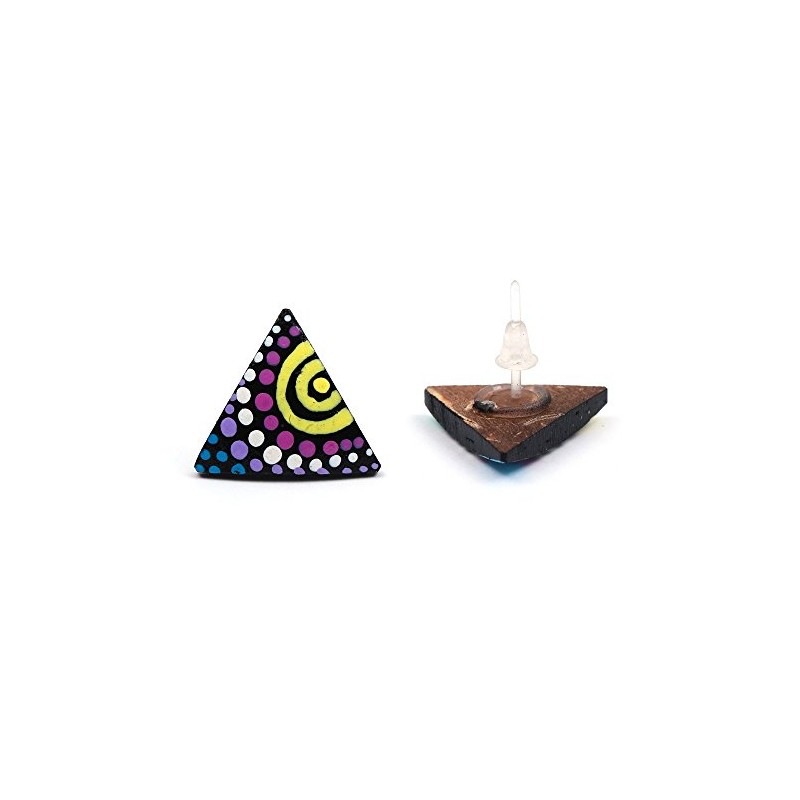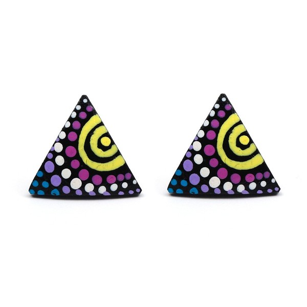 Hand painted vibrant dots coconut shell triangle stud earrings with plastic posts