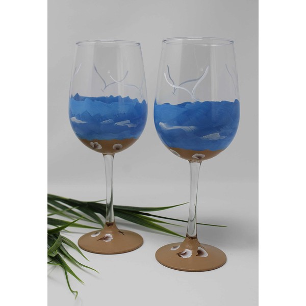 Hand Painted Wine Glasses - Beach and Sand (Set of 2)