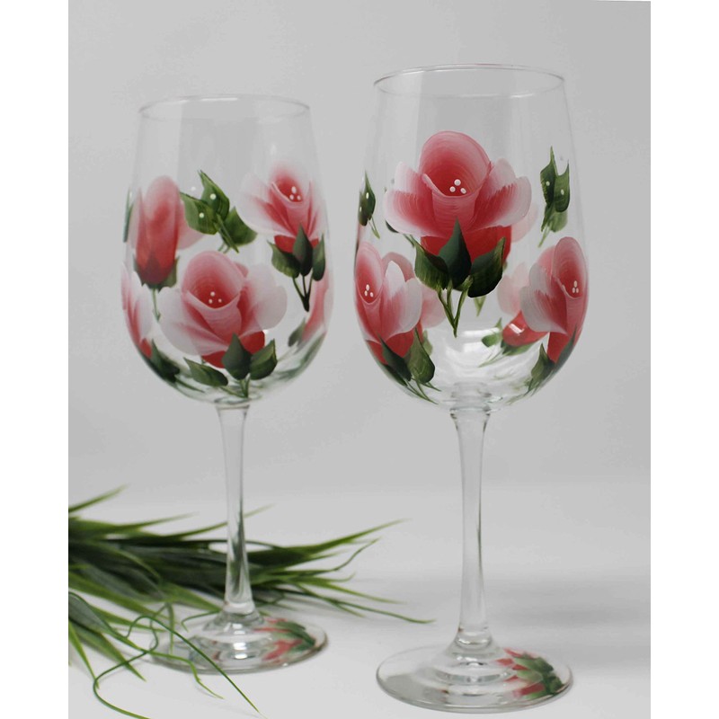 Hand Painted Wine Glasses - Coral Roses (Set of 2)