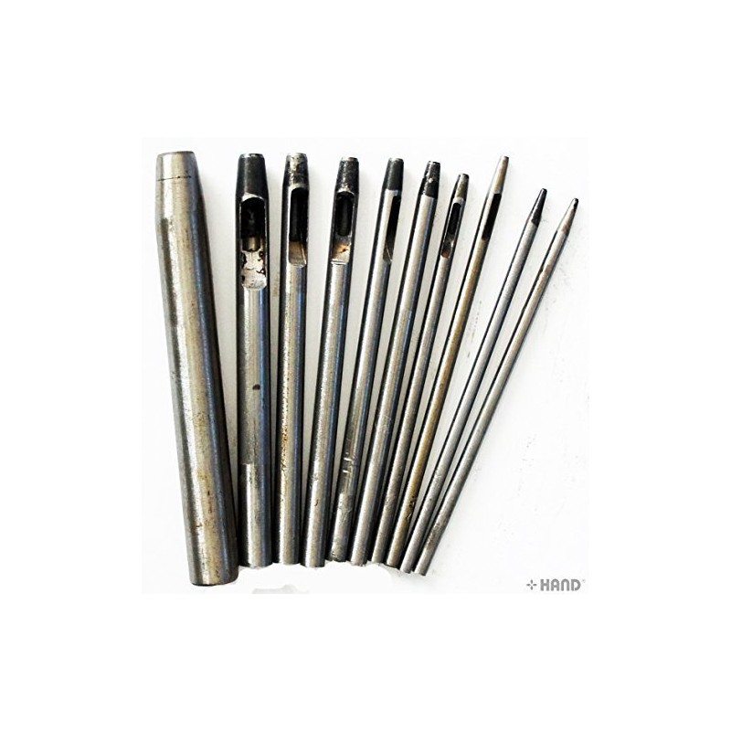 HAND ® Set of 10 Round Hole Leather Craft DIY Eyelet Hollow Punch - Sizes 0.8, 1, 1.5, 2, 2.5, 3, 3.5, 4, 5, 8 mm