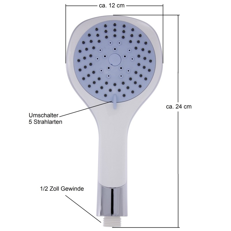 - Large shower head with approx. 12 cm diameter / colour: chrome, white and blue