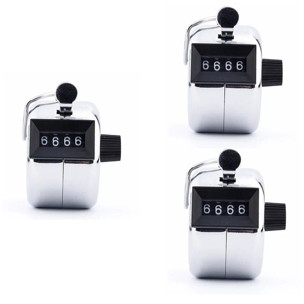 Hand Tally Counters 3 pcs, 4 Digit Metal Pitch Counters Clicker for Counting, Silver