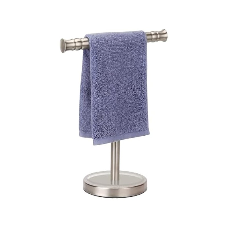 Hand Towel Holder Stand for Bathroom Vanity Countertop SUS304 Stainless Steel T-Shape Free Standing Towel Rack Stand Towel Bar for Bathroom Kitchen (Brushed Nickel)