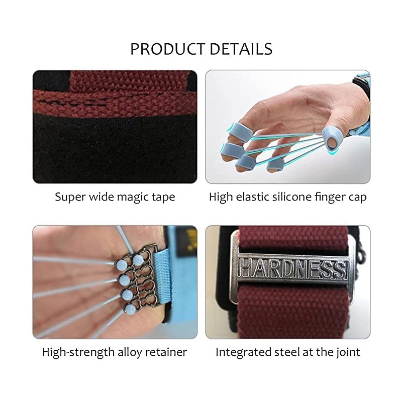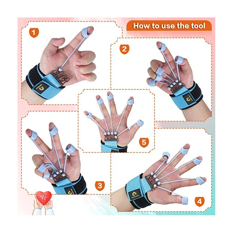 - How to use: Attach the bracelet with the bracelet attachment on the palm side. Choose the most comfortable finger strap. Insert it into the larger hole and extend the service life to the smaller hole until the strap is tight. Place your fingertips in each ring. You can repeat the process and slowly fold it up.