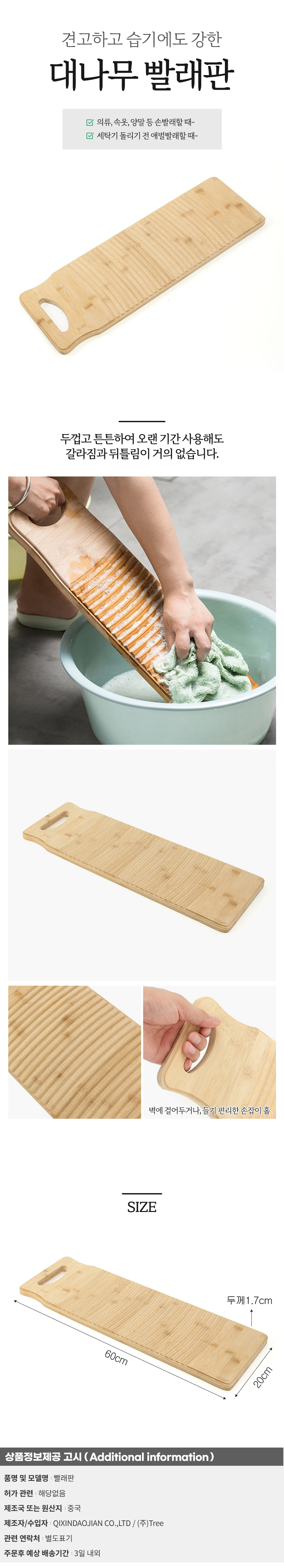 Hand Wash Bamboo Washboard (60x20cm) (Round) 7ea
