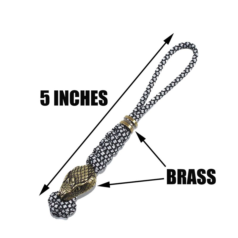 Hand Woven Paracord Knife Lanyards With Brass Snake Head Bead Paracord Lanyard for Knife EDC Tools Tactical Lanyards (White/Black, 5 INCHES)