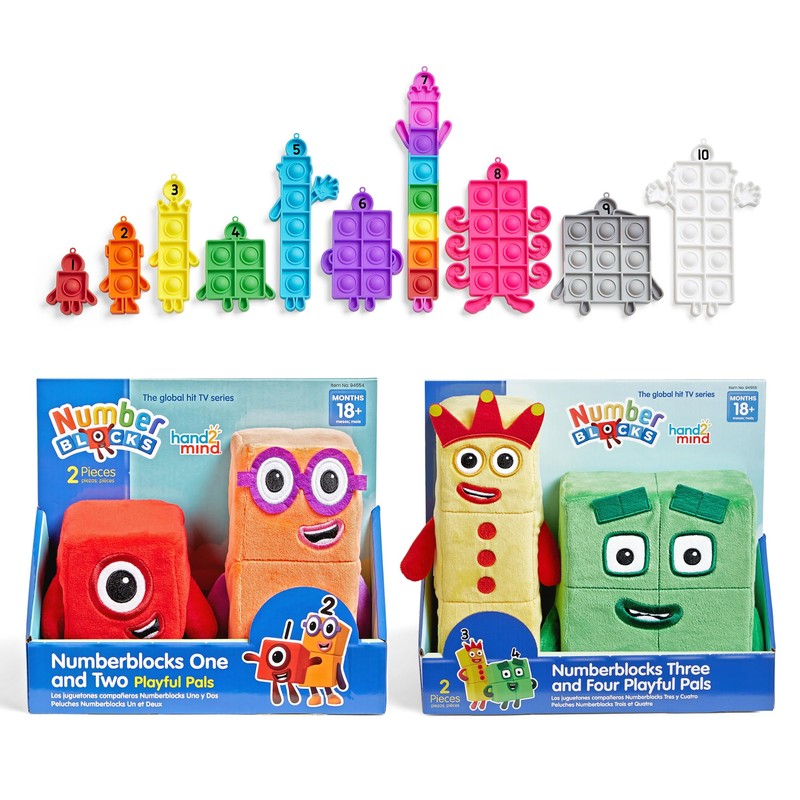 • Bundle includes Numberblocks One and Two Playful Pals, Numberblocks Three and Four Playful Pals, and Numberblocks Sensory Bubble Poppers