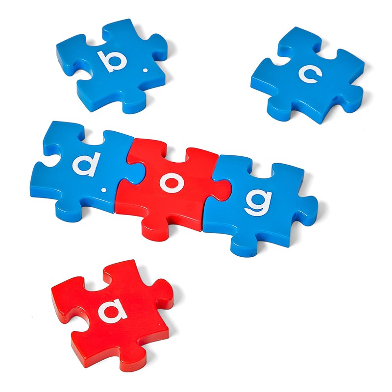 - PHONEMIC AWARENESS GAMES: Durable puzzle pieces are color-coded to help young learners identify consonants (blue) and vowels (red). Puzzle pieces link together for easy word-building.