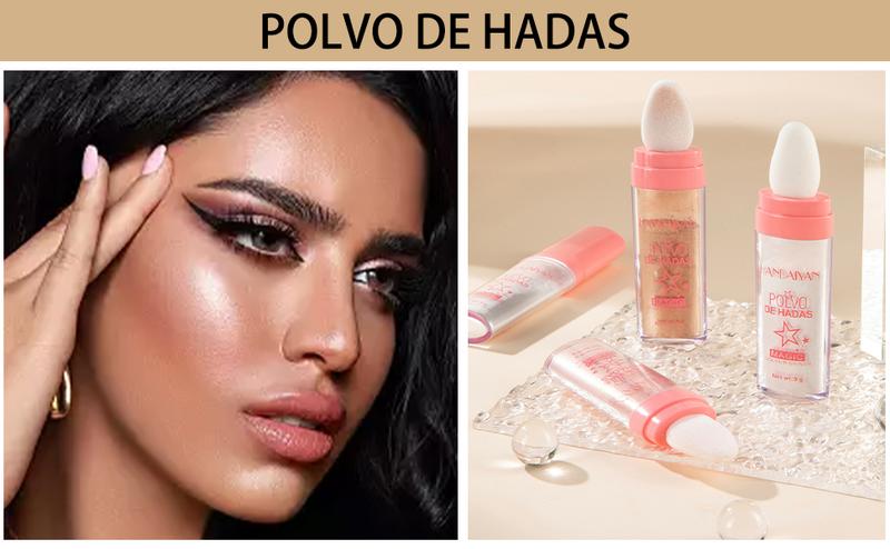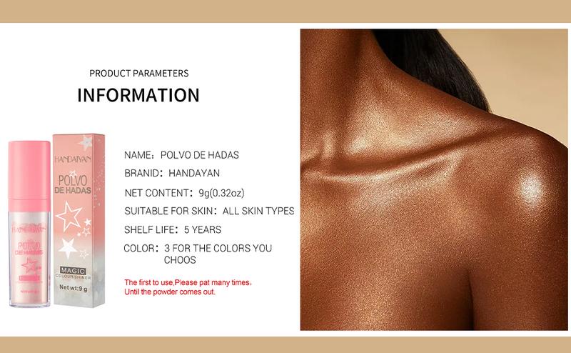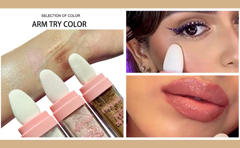 Handaiyan 3 Color Polvo De Hadas Highlighter Makeup Shimmer Glitter Patting Puff, Glow Luminizer Sparkle Fairy Highlighters Powder Halloween/Christmas Gloss Oil - Color: 3 PCS