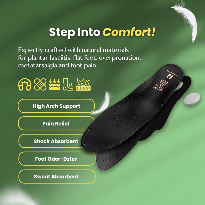 - BREATHABLE & SWEAT-ABSORBING INSOLES: Designed with perforated goat leather, our insoles for men & women absorb sweat instantly, keeping your feet dry all day. The breathable materials and larger pores ensure a cool, odor-free environment for maximum comfort.
