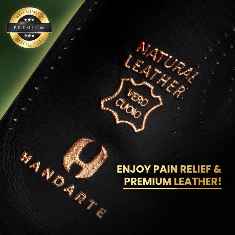 HANDARTE Leather Plantar Fasciitis Insoles | High Arch Support Inserts for Men | Overpronation Insoles for Flat Feet & Metatarsalgia Relief | Anti Odor - Durable - Anti Slip (US M11 | EU45)