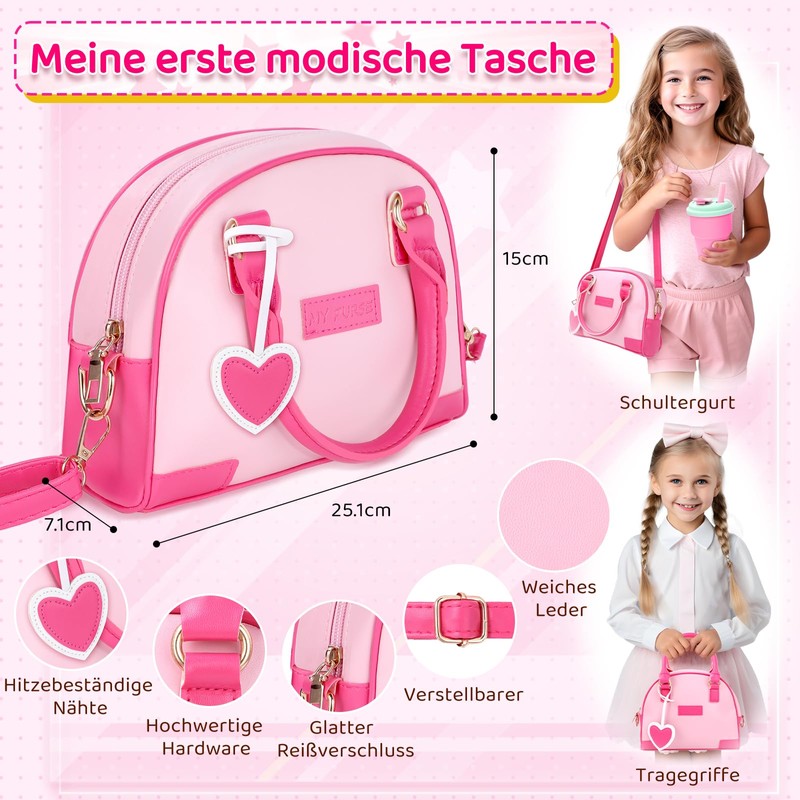 - Stylish children's handbags for girls – the wallet for children girls is made of soft leather. The smooth metal zipper is easy for little fingers to use. Carry handles and a removable and adjustable soft strap that can be worn flexibly as a handbag, shoulder bag or crossbody bag. All girls' toys can be stored in the stylish handbag for toddlers. Children's make-up princess toy for 3 4 5+ year old girls. Prepare this amazing handbag for girls to give your little princess Christmas gifts!