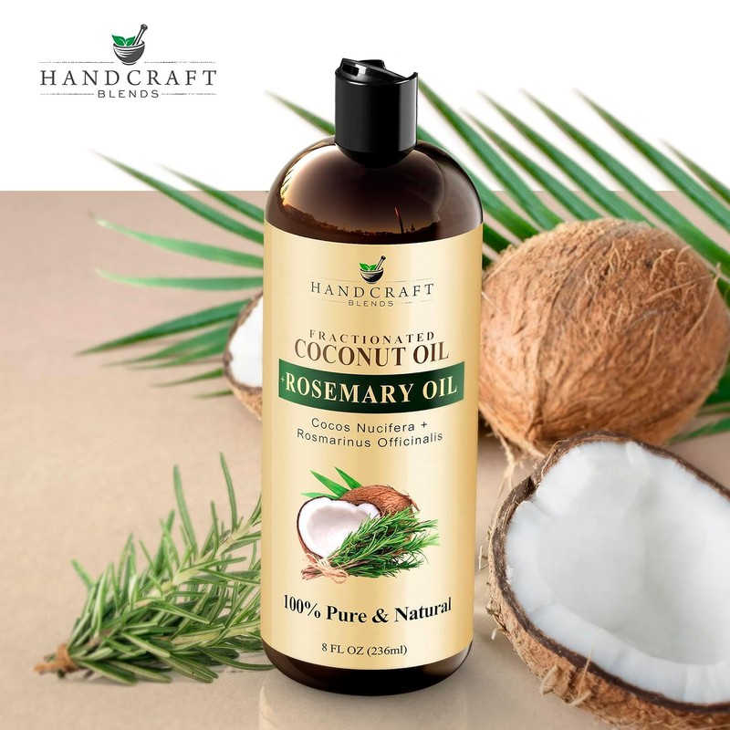 Handcraft Blends Fractionated Coconut Oil Infused with Rosemary - 8 Fl Oz - 100% Pure and Natural - Premium Grade Carrier for Skin, Hair and Massage
