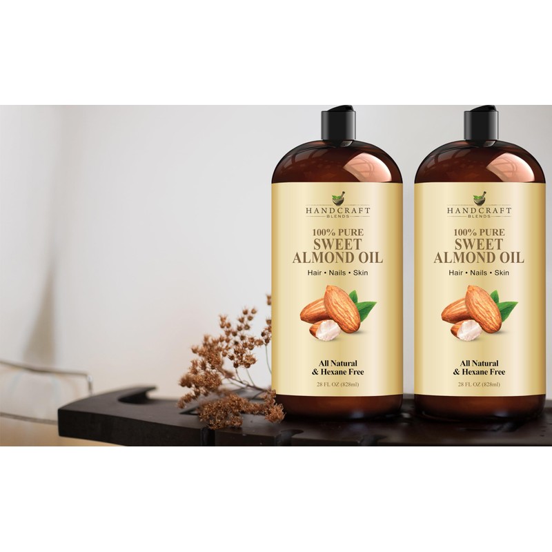 Handcraft Blends Sweet Almond Oil - 28 Fl Oz - 100% Pure and Natural - Premium Grade Carrier Oil for Skin and Hair - Hair and Body - Massage - Hexane-Free