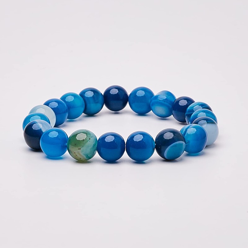 Handgefertigtes 10mm Edelstein-Armband für Damen & Herren | Unisex Stretch-Armband aus Natursteinperlen in Amethyst, Rosenquarz, Tigerauge (Blauer Achat)