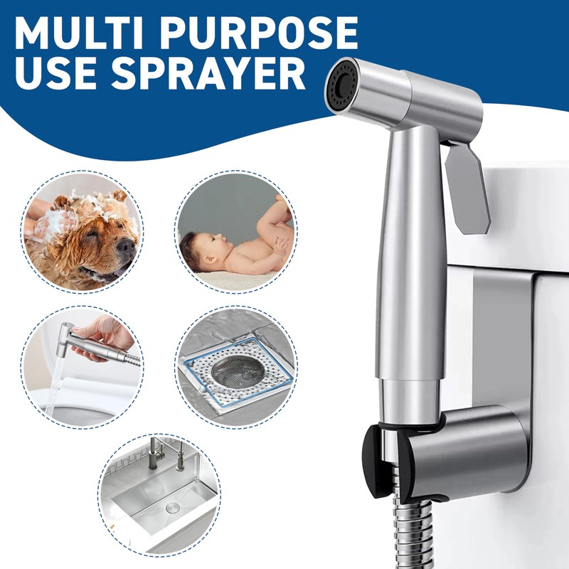 This handheld bidet sprayer for toilet is the ultimate solution for enhancing your personal hygiene routine. Engineered for convenience and versatility, this ergonomic bidet sprayer makes cleaning effortless while offering multiple uses around the home. Whether you're looking for an eco friendly alternative to toilet paper spray or a practical tool for everyday cleaning tasks, this handheld bidet spray is a must have addition to any household. This 7/8 inch bidet sprayer is designed to provide superior hygiene with its easy to use one hand operation. It offers a more hygienic and refreshing clean compared to traditional toilet seat bidet sprayer, giving you a healthier and more comfortable experience. The adjustable water pressure lets you customize the spray to your preference, from a gentle rinse to a stronger stream. Ideal for those with limited mobility or those recovering from surgery, this versatile bidet sprayer serves multiple purposes. It functions as a cloth diaper sprayer, pet shower, and flower sprayer, making it an incredibly useful tool in any home. Its flexibility allows it to meet a wide range of needs. This handheld bidet spray is also incredibly easy to install, with clear instructions that allow for a quick setup without needing a plumber. It fits most toilet seats, making it a convenient addition to your bathroom. Made from durable 304 stainless steel and brass, it ensures long lasting use, with a rust proof and anti corrosion finish that’s easy to maintain. This handheld bidet sprayer combines exceptional hygiene, convenience, and versatility, making it the perfect upgrade for your bathroom. Order yours today and experience a new level of cleanliness and comfort.