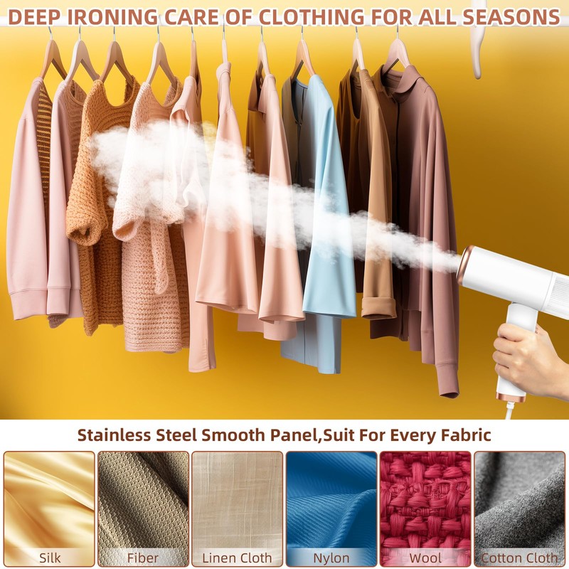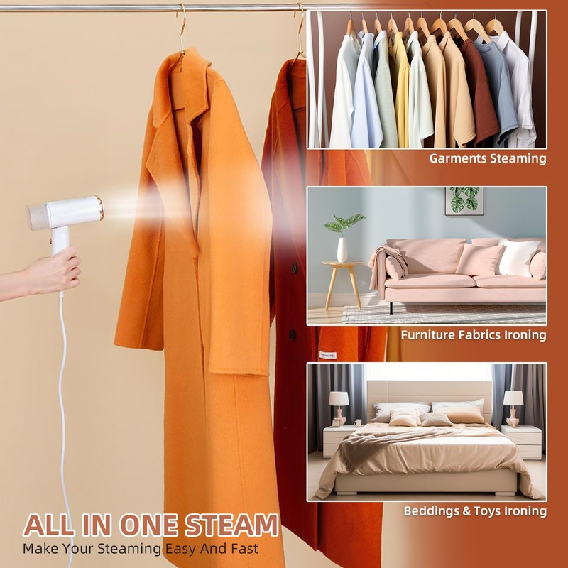 - [MULTI-FUNCTION STEAMER]This multifunctional steamer,whether it is used in terms of clothes,it can handle curtains,bedding and more.Not only that, if you need to Clean other areas of your home, our multi-functional steamer will do the trick.Ideal for families,commuters and airplane passengers in hurry. Say goodbye to bulky, traditional ironing appliances forever.