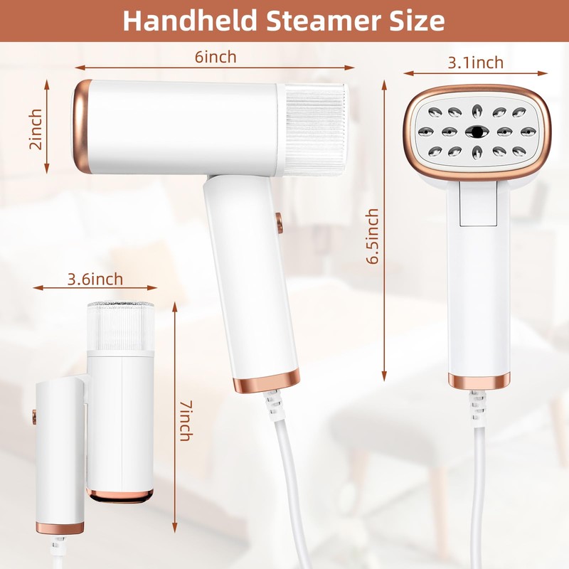 - [COMPACT & PORTABLE]Enjoy hassle-free travel with our handheld travel steamer that folds up for easy portability and weighs only 1.32 lbs. Ideal for home, office and travel. Easy to store in any suitcase, backpack.while the extension cord meets the need to not worry about being too far away from an outlet when you're out and about, making it more convenient to use.