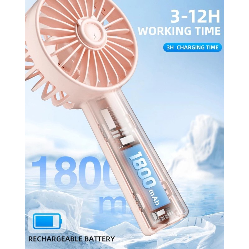 Handheld Fan, Portable Mini Fan 3 Speeds, 1800mAh Battery for Women