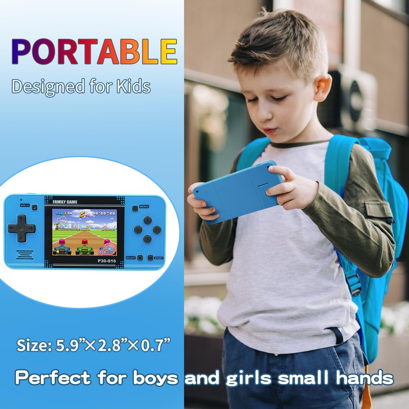 Handheld Game for Kids -Preloaded 220 Retro Video Games, Portable Gaming Player with Rechargeable Battery 3.0" LCD Screen, Mini Arcade Electronic Toy Gifts for Boys Girls (Blue)