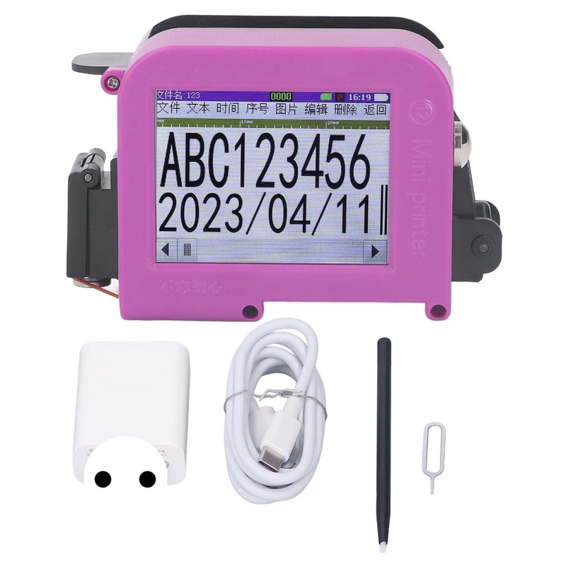 - LED touch screen: the handheld inkjet printer has a high-resolution LED touch screen and a simple UI design that gives you a mobile phone-like experience. The intelligent 4-core processor and powerful battery ensure smooth and continuous operation of the system. It features a compact housing, convenient HD coding, a colour display, no need to download an app to edit text on the touchscreen, an updated HD touchscreen user interface and various fonts for content.
