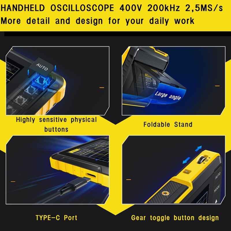 • COMPACT & PORTABLE Our digital oscilloscope is compact and lightweight, ideal for on-site troubleshooting. With its space-saving design, it is easy to transport and allows you to work effectively on maintenance and DIY projects.