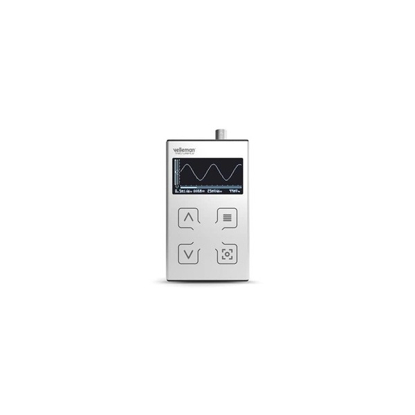 Note that probe is not included. The HPS140MK2 handheld oscilloscope still holds the same power as its predecessor, the HPS140, but in a new and modern design. Although small in size, this oscilloscope packs 40 MS/s in real time and it's sensitivity can go as low as 0.1 mV. It also has a full automatic measuring system but can be operated manually if preferred. Add the HPS141 option and use your HPS140MK2 as a versatile component tester. Features 40 Mega samples/sec in real time bandwidth up to 10 MHz full auto range option sensitivity down to 0.1 mV signal markers for amplitude and time memory hold function direct audio power measurement optional: HPS141: component tester for pocket scope HPS140MK2 HPSPR1: X10 measuring probe HPSP1: protective pouch for Velleman Instruments Specifications bandwidth: up to 10 MHz (-3dB or -4dB at selected ranges) input range: 1 mV to 20 V / division in 14 steps input coupling: DC, AC and GND real-time sample rate up to 40 MS/s AD resolution: 8 bits time base: 250 ns to 1 h per division auto set-up function (or manual) probe x10 readout option readouts: DC, AC + DC,True RMS, dBm, Vpp, Min-Max. (±2.5%) audio power measurement from 2 to 32 ohms hold & store function time and Voltage markers readout Max. 100 Vp AC + DC Monochrome OLED power supply: 4 x 1.5 V AAA batteries (not incl.) operating time: up to 8 hours on quality ALkaline batteries for use on CLASS II pollution degree II installations dimensions: 4.49 x 2.68 x 0.87 inch weight: 5.86 oz current consumption: max. 150 mA