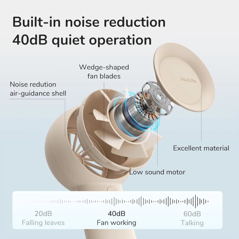 3. [5 Gear Turbo Wind]: JISULIFE Portable Fan allows customization through 5 gear settings, offering potent cooling options suitable for various wind conditions.