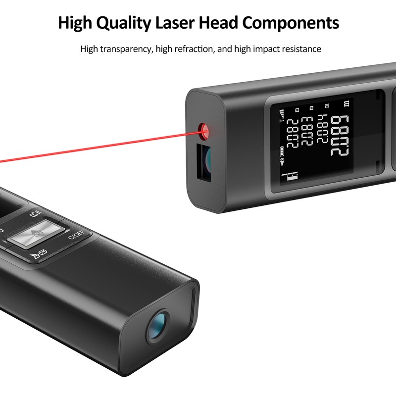 1、Millimeter Precise: equipped with high speed algorithm chip and upgraded lens, this meter delivers stable and precise measurement with accuracy of ±2mm. 2、Capability: 0.1s quick measurement of distance, area, volume, indirect measurement through Pythagorean theorem. 3、Practical Functions: unit switchable among meter (m), inches (in), feet (ft); auto shut off in 60s. Support easy storage of 50 groups of data. 4、Stay Accurate: with self calibration which allows users to calibrate the meter whenever necessary, with adjusting range from -7 to 7mm. 5、Rechargeable Battery: built in rechargeable battery has a large capacity of 500mAh and can be easily charged via Type C USB cable. 6、Mini Size: it's small enough to fit in any jacket or trouser pocket, widely used in interior decoration, indoor design, construction field.