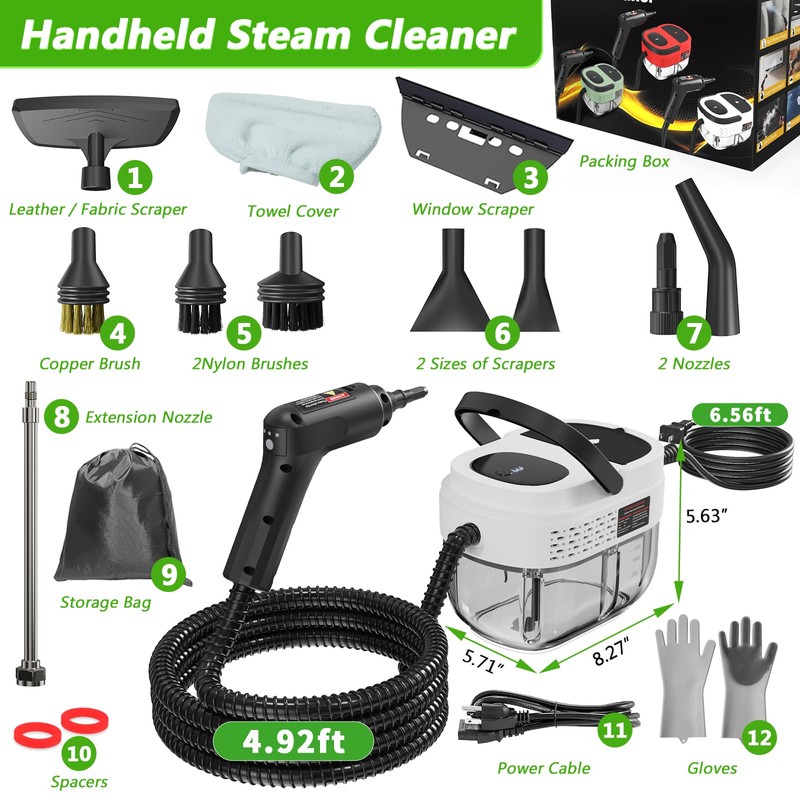 - Stylish & Safe Design with Color Options: Available in 3 color choices, this portable steam cleaner features durable materials and includes gloves for safety. Note: The steam hose gets hot during use—please handle with care to avoid burns