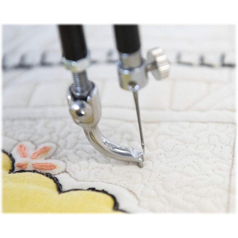 The Micro Foot is ideally designed for micro quilting, stippling, and thread painting. The Micro Foot also provides precise access to the quilting area when working with embellishments. The base of the foot will allow a clear view of the stitching path in every direction. Your machine should already be fitted with a Handi Feet mount that works with the interchangeable Handi Feet.