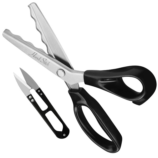 Handi Stitch Pinking Scissors with Thread Cutter - Dressmaking Scissors Fabric Scissors Zigzag 22.86 cm Stainless Steel - Scissors Sharp Wave Scissors for Cutting Fabric, Clothing, Textiles, Sewing,