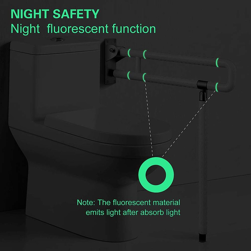 - 【Extended handle with Night Vision Function】Unlike other bathroom handrails that are only 24.5 inches, our extended handle is 29.5 inches and suitable for most toilets and sinks.Designed with six fluorescence rings in the tube make the handicap handrails can also be found accurately in the dark(The fluorescent material emits light after absorbs light).It's the perfect toilet handles for elderly.